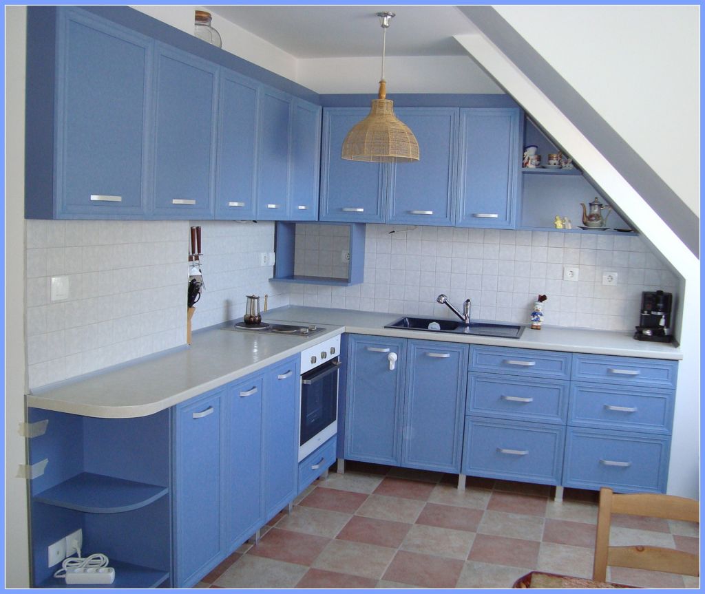 синя кухня в ретро стил №145